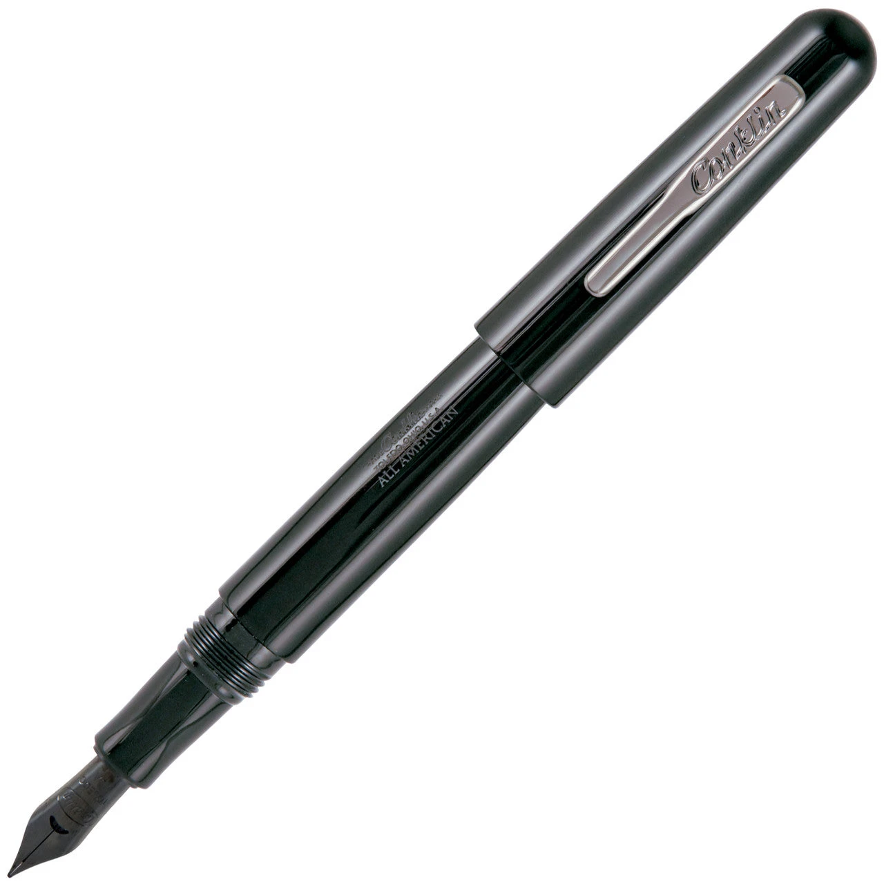 The tapered cap tops feature “rocker style” clips, and barrels are engraved with the Conklin trademark and All American logo. This collection is suited to individuals looking for a well-sized pen with a unique design that still rings true to original Conklin designs.