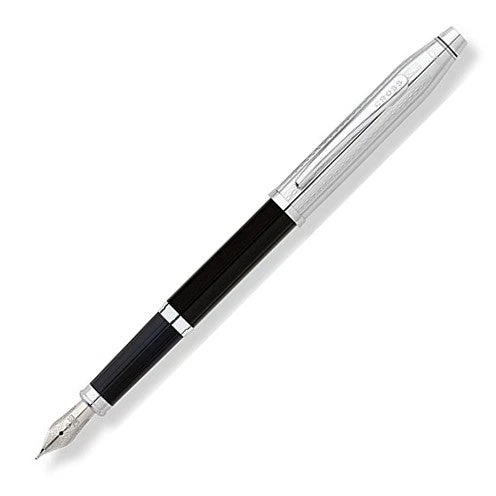 This Cross Century II Fountain Pen features and engraved pattern on the chrome cap, a polished black lacquer barrel and a medium stainless steel nib.