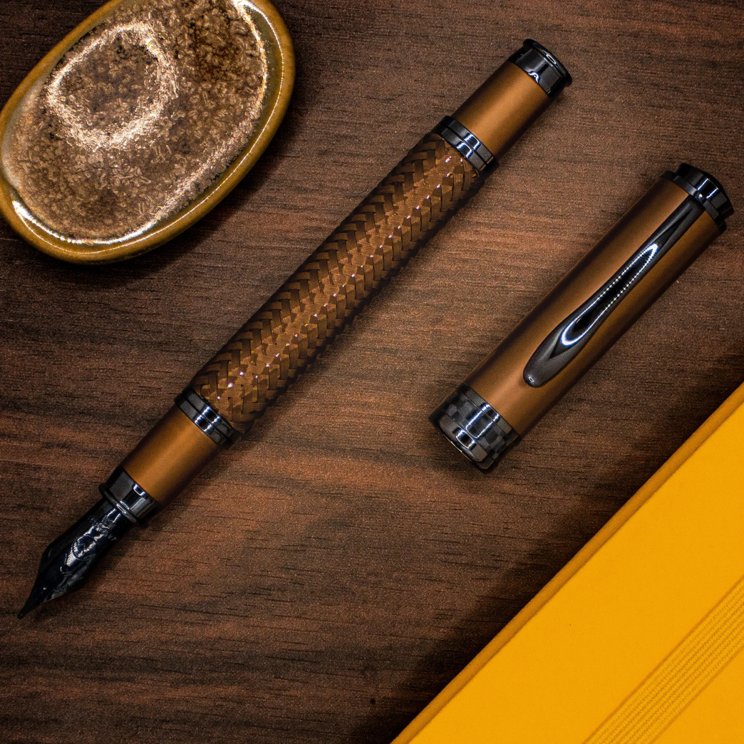 All pens in the collection feature a 304 wire-braided stainless steel sleeve with PVD coating over a brass barrel. Wire braiding is often fitted on high-performance cars as it offers the best possible protection against mechanical damage. The braided mesh is made by winding wire around a core on spools that are rapidly rotated in a circular pattern, weaving the wire together and molding it into a flexible and robust braid. 304 wire-braided mesh’s advantage lays in its incredible durability and resistance against UV rays, abrasion, and chemical corrosion, making it virtually indestructible.