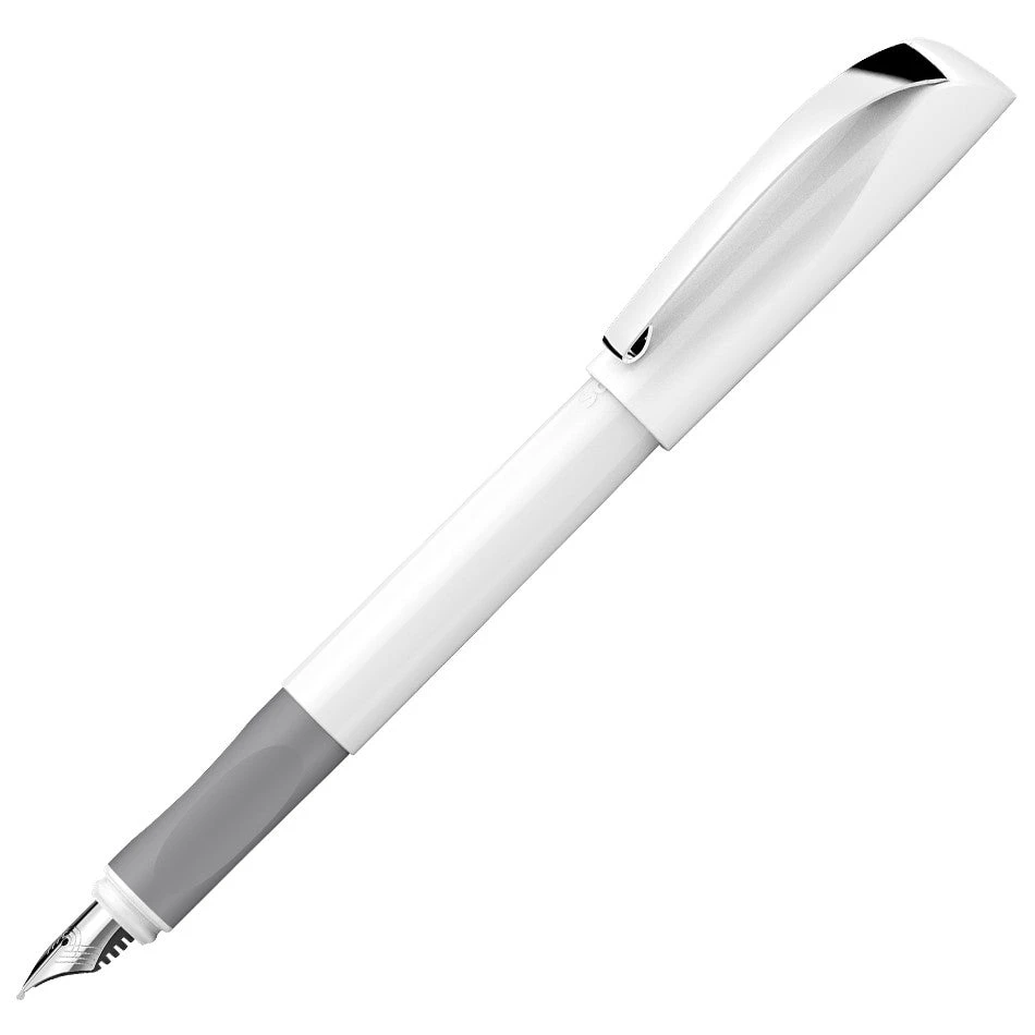 A Fountain pen with ergonomically rubberizedΒ grip profile and high-quality stainless steel nib with iridium tip. Modern design with elegant metallic look and striking curves. Equipped with a sturdy metal clip and royal blue, erasable standard ink cartridges. Equally suitable for right and left-handers.