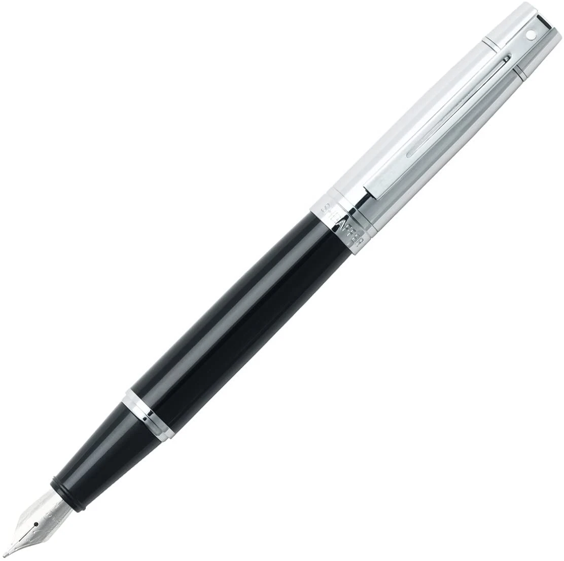 Sheaffer 300 Glossy Black Lacquer, Chrome Cap, Fountain Pen